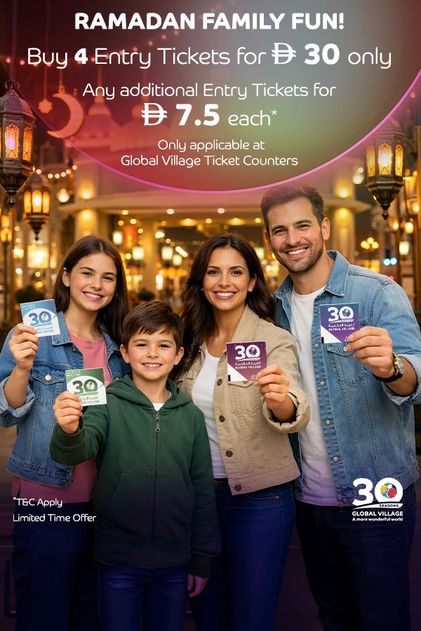 Turn your family outing into an unforgettable experience with the Global Village Family Pack! For only AED 225, enjoy an amazing value of AED 505 and make the most of your day with: