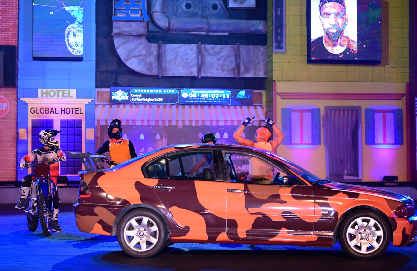 منذ اللحظة الأولى مع الدي جي النابض بالطاقة على متن سيارة، ينطلق الضيوف في مواجهة ملحمية بين فريقين من محترفي الأكشن. استمتعوا بالانزلاقات على طريقة طوكيو، القفزات العالية، قفزات الدراجات النارية، النيران والانفجارات، مع سيارات شهيرة مستوحاة من سلسلة أفلام فاست أند فيريوس!