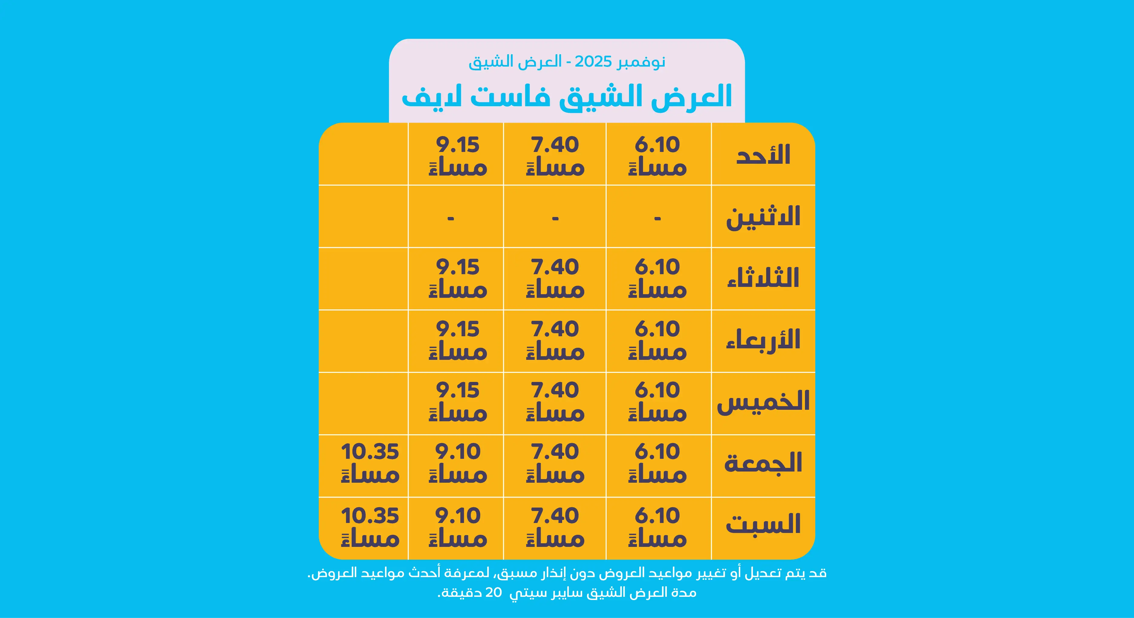 قد يتم تعديل أو تتغير مواعيد العروض دون إنذار مسبق