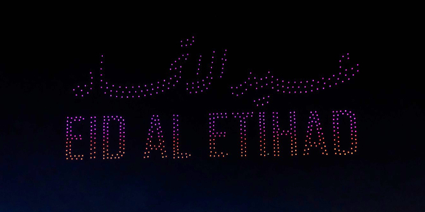 في 1 و2 ديسمبر عند الساعة 9 مساءً بعد الألعاب النارية مباشرة، شاهدوا السماء تتحول للوحة فنية عن طريق عروض الدرون المذهلة احتفالاً بروح الاتحاد.
