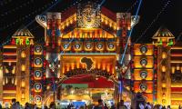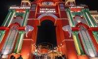 استمتعوا بالمزيج النابض بالحياة بين ثقافات سريلانكا وبنغلاديش في هذا الجناح. يجمع التصميم المعماري بين طراز المعابد التقليدية وتأثيرات القصور الملكية، مع أبراج مقببة وأقواس دقيقة وتفاصيل زجاجية ملونة. الألوان الزاهية من الأحمر والأخضر والذهبي تعكس روح الاحتفال.