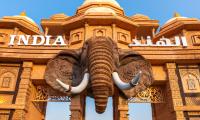 يحتفي جناح الهند بقرون من الفن والإبداع، حيث تتزين واجهته بالقباب المزخرفة والأقواس الضخمة والنقوش الدقيقة المستوحاة من القصور والمعابد. يتوسط الواجهة تمثال الفيل المهيب رمز الحكمة والقوة.
