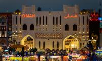 اكتشفوا جناح عمان، المستلهم من القلاع والبوابات العمانية التقليدية. تضم الواجهة أقواساً كبيرة وأبراجاً مقببة ذهبية وجدراناً مزخرفة وزخارف النخيل، لتعكس تاريخ الدولة وفخرها الثقافي.