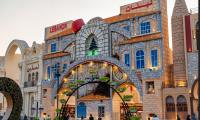 استمتعوا بجناح لبنان، حيث الأسطح الحمراء والنوافذ الزرقاء والجدران الحجرية الريفية، مع قوس مركزي يعلى بشجرة الأرز الشهيرة. تضيف النباتات والكروم لمسة طبيعية، مجسدة دفء قرى لبنان التاريخية.