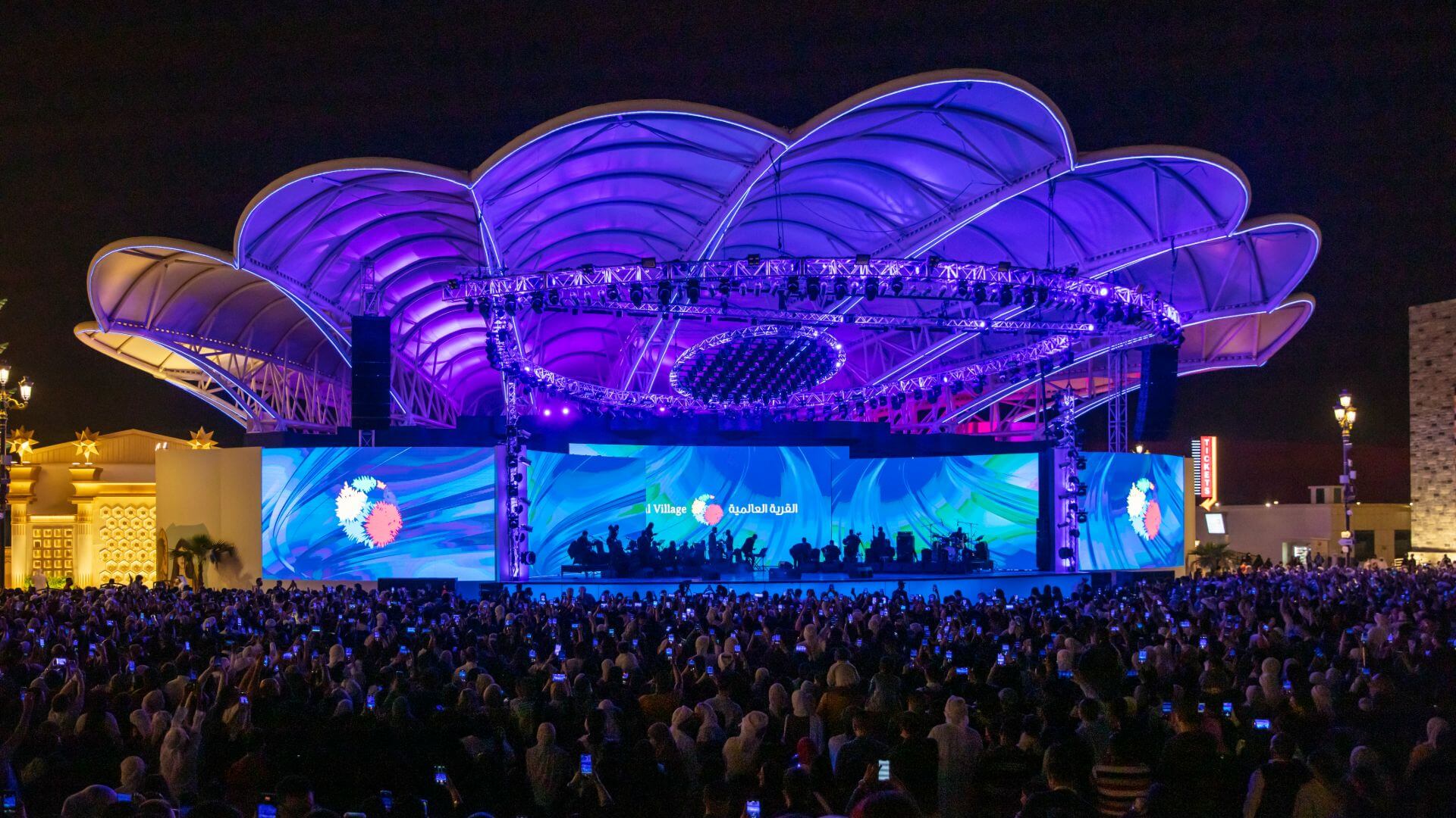 ولتزداد الأجواء روعة، ستضيئ سماء القرية العالمية بعرض مبهر من الألعاب النارية والدرون عند الساعة9:00 مساءً، ليكون خلفية مميزة للاحتفالات.