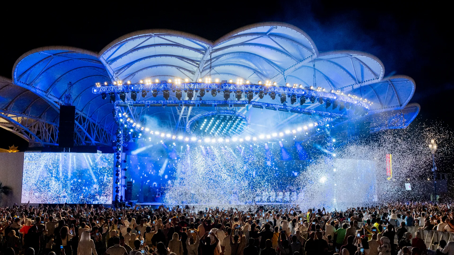 ارفعوا مستوى الحماس مع تحوّل المسرح الرئيسي في القرية العالمية إلى مساحة نابضة بالحياة على أنغام موسيقية حماسية وأشهر الأغاني التي يمزجها منسق الموسيقى.