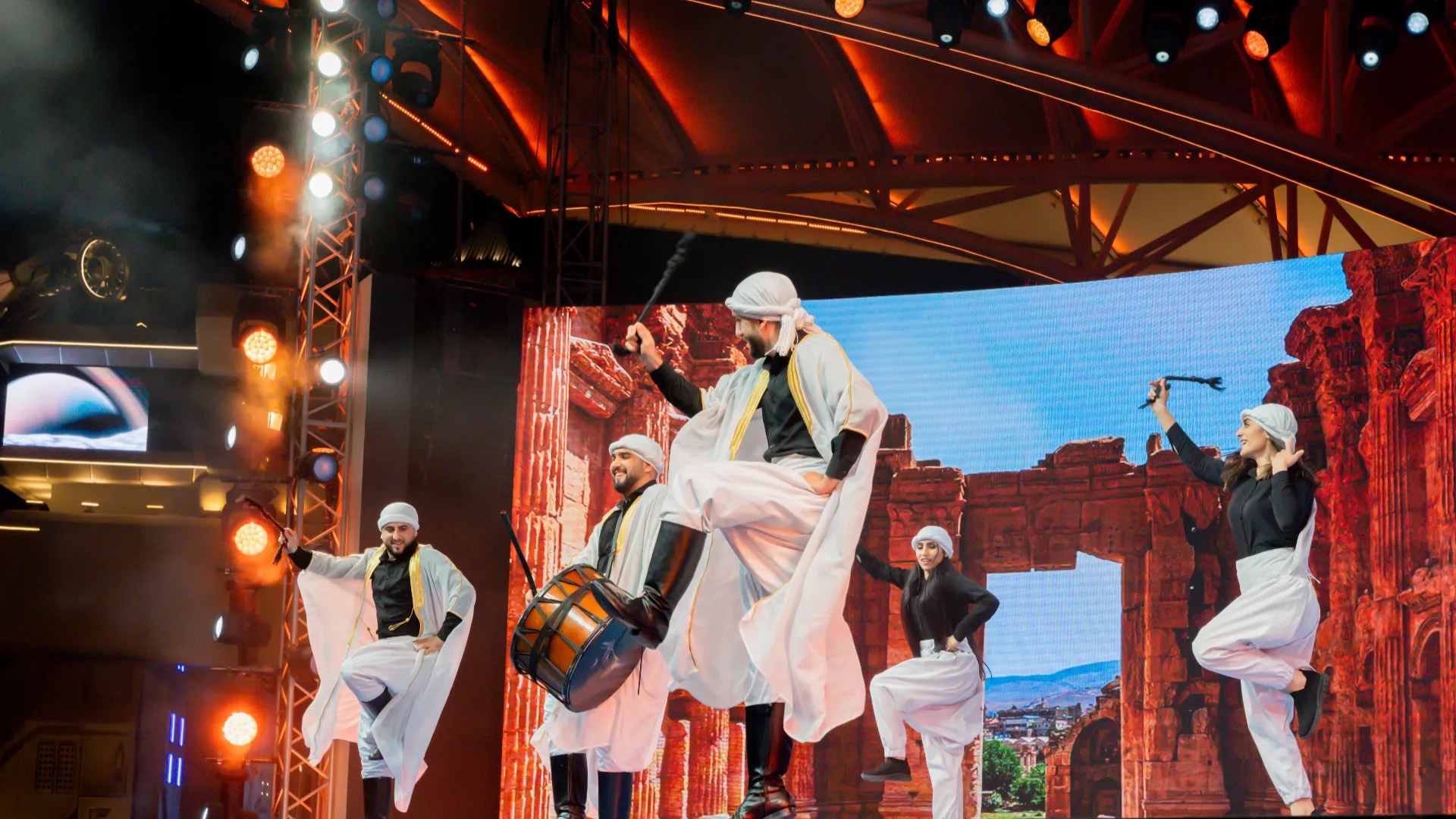 مستوحى من التراث الشعبي الأردني، يقدّم هذا العرض الحيوي حركات قدم قوية وإيقاعات متناسقة على أنغام موسيقى تراثية، يؤديها فنانون يرتدون الأزياء الأردنية الأصيلة. وتعكس كل خطوة رقصات متوارثة عبر الأجيال، تُؤدّى في المناسبات والاحتفالات.