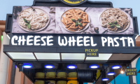 Get your cheesy fix! Choose between spaghetti or penne pasta, mixed with white or pink sauce and tossed inside a huge hollowed-out wheel of cheese, served fresh with toppings like shrimp, chicken, or vegetables.