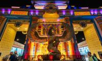 Egypt Pavilion pays majestic tribute to the grandeur of the pharaohs. With towering columns, hieroglyphics, and colorful carvings in gold, blue, and red, the facade echoes temples along the Nile. A winged scarab crowns the entrance, symbolizing rebirth and protection.