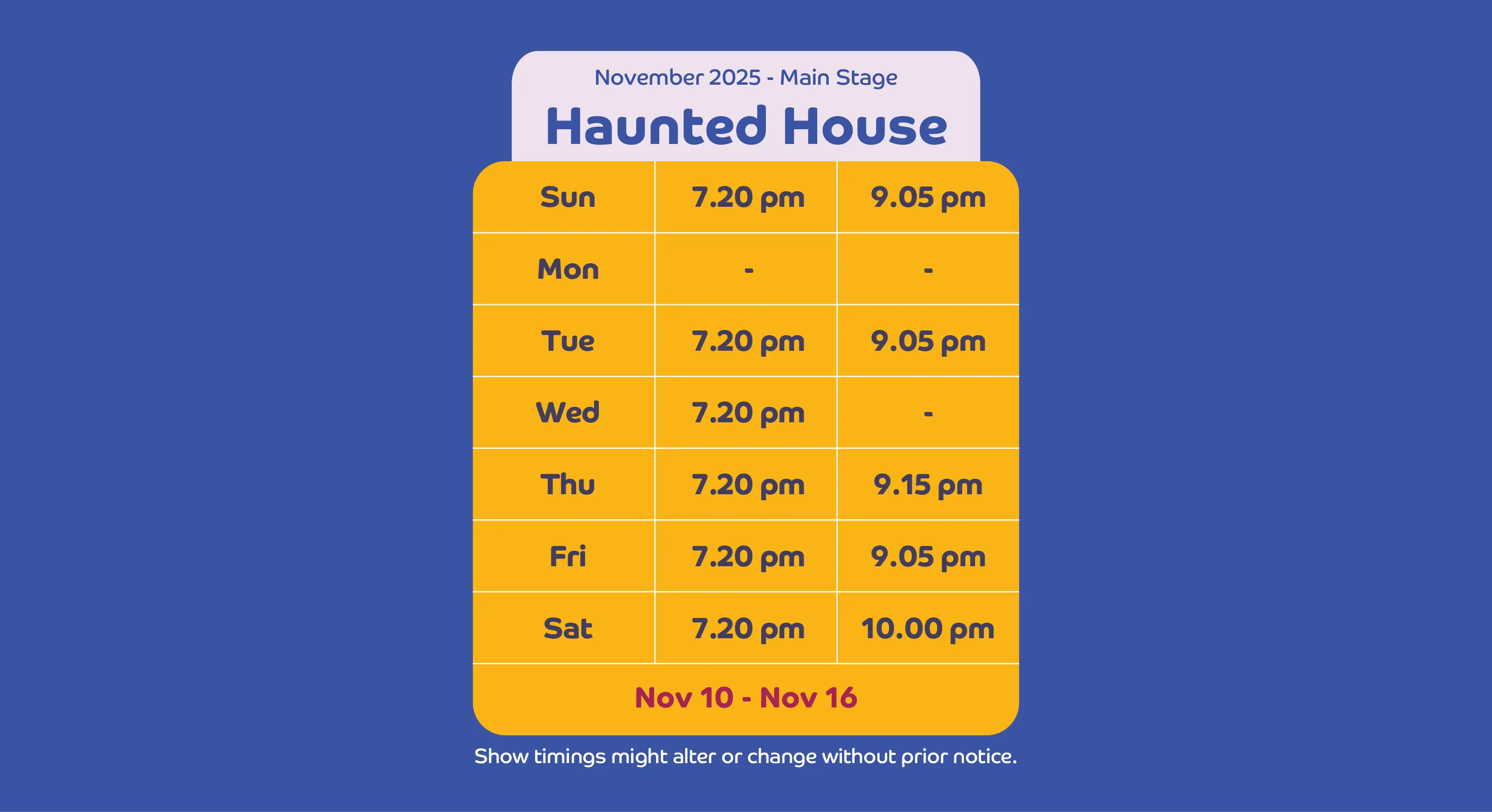 Show timings might alter or change without prior notice