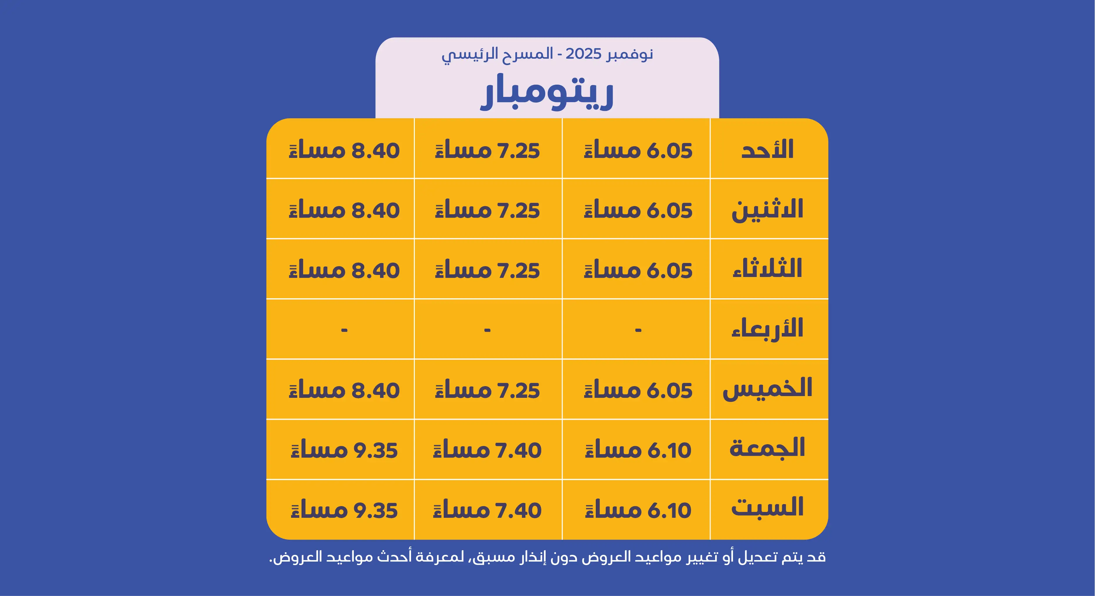 اشعروا بالإيقاع مع عرض ريتومبار، عرض الدرامز المذهل في الشوارع الذي يجذب الأنظار منذ الضربة الأولى! يتميز هذا الفريق العالمي بالطاقة والدقة، حيث يحيي الشوارع بإيقاعات نابضة بالحياة وقرع طبول مدهش وحركات راقصة جذّابة. يحوّل ريتومبار كل عرض إلى مهرجان من الصوت والحركة والألوان! إنها تجربة تجعل الضيوف يقفون، يصفّقون ويرقصون بحماس.